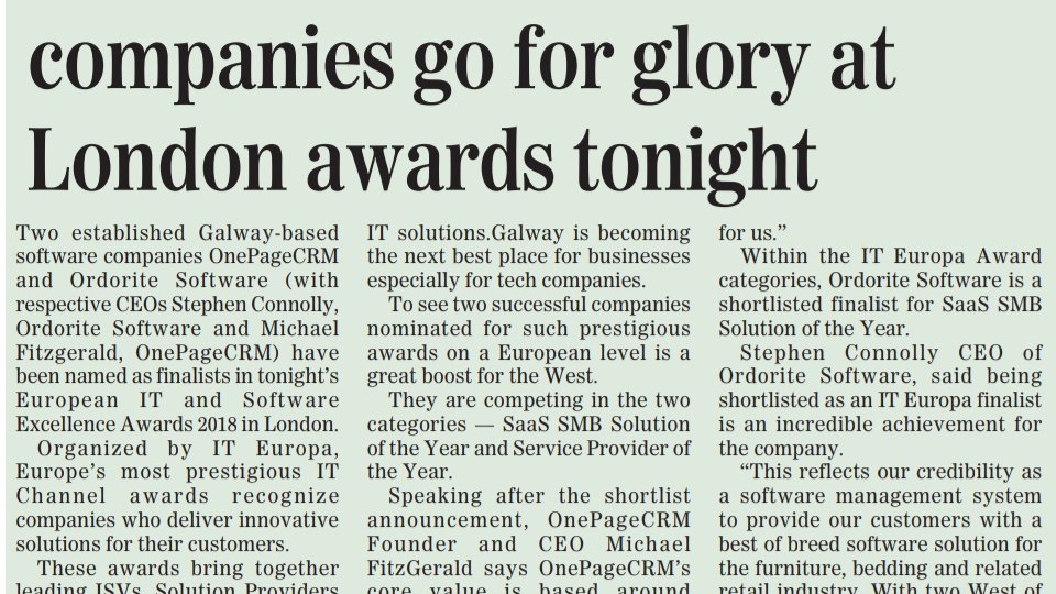 Today's European IT and Software Excellence Awards have continued to spark interest and excitement as the finalists head into London for the event. Companies from Ireland were well in evidence, but a strong group of Romania and the Nordics, including Iceland were represneted int he finalists. The winners will be announced at the gala dinner. Good luck everyone